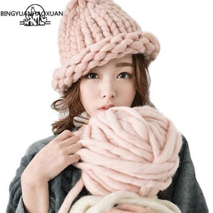 Women's Fashion Winter Wool Coarse Lines Outdoor Warm Beanie Knitted Hat