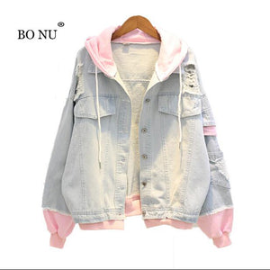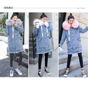 Women Warm Winter Bomber Spring Autumn Hooded Coat Basic Jeans Denim Jackets