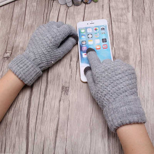Women Warm Winter Knitted Full Finger Screen Luvas Mittens Girl Solid Woolen Gloves