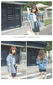 Women Winter Bomber Spring Autumn Coat Swish Pockets Basic Jeans Denim Embroidery Letter Coat Hole Outerwear Jackets