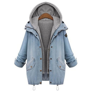 Women Warm Winter Bomber Spring Autumn Hooded Coat Swish Pockets Two Piece Basic Jeans Denim Jackets