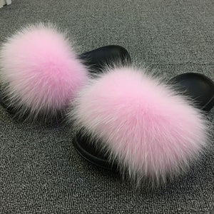 Women's Furry Cute Plush Fox Hair Fluffy Fur Winter Warm Slippers